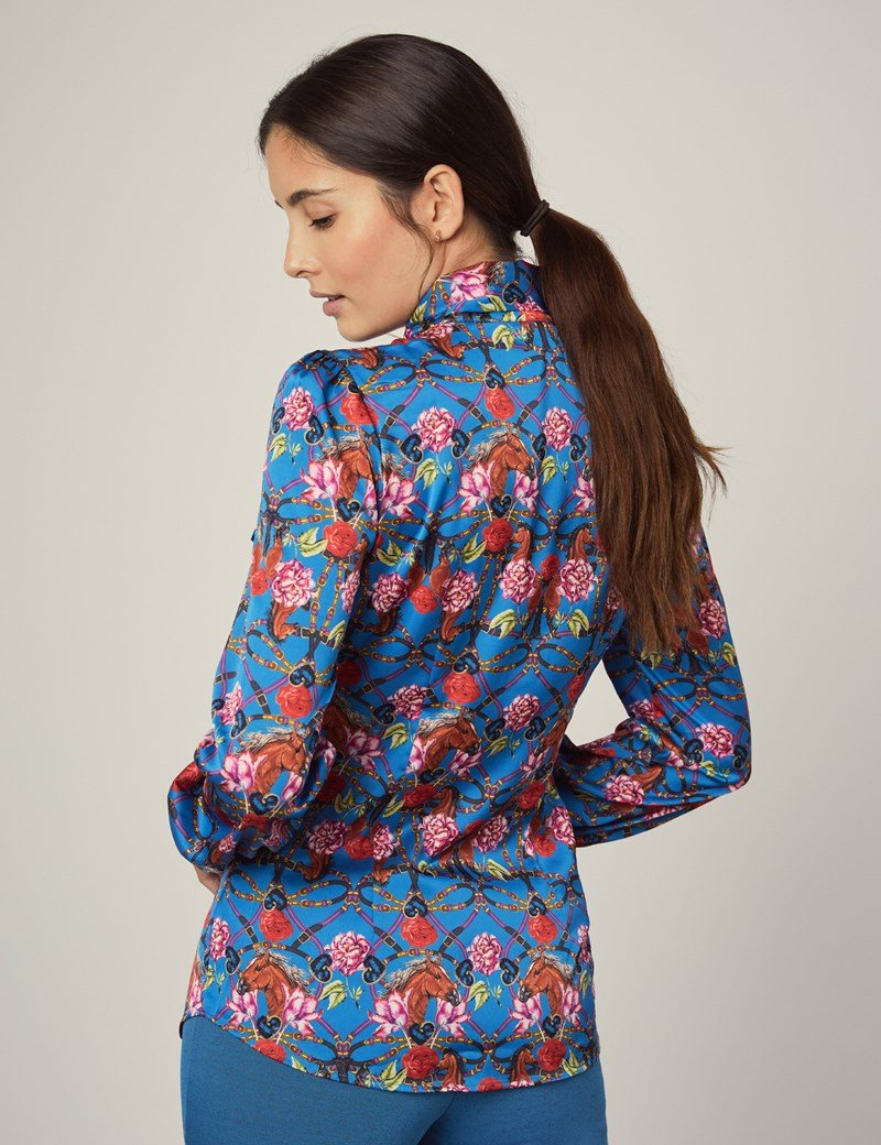 This elegant Hawes and Curtis Women Dark Blue Satin Blouse is fashionable and indulgent addition to any women’s attire. The bow adds a distinctive feature, offering a unique and eye catching aspect to your outfit. The bow is also self tied to allow for as large or small a bow as you wish.