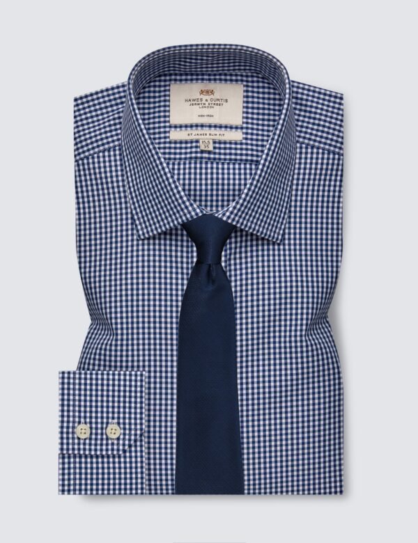 Hawes & Curtis Men Blue White Tiny Check Shirt, this shirt is comfortable to wear and soft to touch. The St James plain blue poplin shirt is suitable for a range of occasions including the workplace and casual engagements.