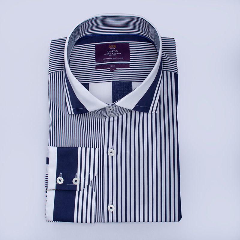 Hawes & Curtis Men White & Navy Short Sleeve – this men’s navy shirt features a distinctive high two button collar also designed with the modern man in mind, this Curtis shirt has been specially engineered to flatter your physique whilst maximizing comfort. In addition, it is crafted from luxury 100% cotton fabric. The relaxed slim fit is our most regular and flattering fit. It is gently tapered across the waist and chest, creating a relaxed yet defined silhouette. Team it with garment-dyed chinos and casual leather shoes for an effortless laid back look.
